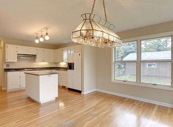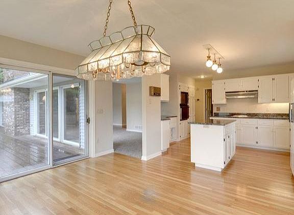Custom home with new paint and carpet, hw floors, vaulted ceilings, large deck, open kitchen with granite and island. Main floor laundry with desk, sink, closet, and built in ironing board.