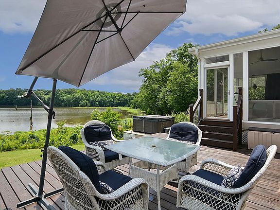 Unique Waterfront Home! Solid and beautifully maintained Stunning 5 bedroom 3.5 bath lakefront home in prime Wake Forest location. Breathtaking panoramic views of Shearon Farms Lake. Loaded with updates including new carpet & fresh interior paint. Hardwoods throughout 1st floor. Bright & open formal dining room. 1st floor office with french doors. Spacious family room features cathedral ceiling & gas log fireplace with stone surround. Eat-in kitchen offers granite tops, center island, tile backsplash, tons of cabinet space, stainless steel appliances (double oven) & walk in pantry. Fantastic 3 season room with vaulted ceiling overlooking the lake. Large primary suite has generous walk in closet, dual vanities & whirlpool tub with separate tile shower. 3rd floor includes huge bonus room + bedroom with full bath, remote control garage door with sensors, Sip coffee or an evening glass of wine on the screen porch or deck, watch blue Heron, turtles, and an occasional bald eagle. A world away yet close to it all. Triangle Town Center, Golf, YMCA. Pool community. Truly a unique opportunity!