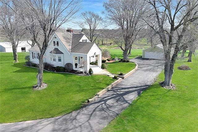 Country Farmhouse Chic with Picturesque Setting in the Heart of the Northland! Approximately 3 Acres filled with chirping birds over lush estate. Home overflows with Charm and Character. Spacious Great Room features Brick Fireplace, Custom Decorative Trim Chair Rail and Triple Bay Window. Country Kitchen boasts Abundance of Custom Cabinets, Island, and Pantry. Breakfast Nook with Custom Designed China Cabinet and Desk Area. Additional Formal Dining Room with Beautiful Views! Two Spacious Bedrooms on Main Level with Closets. Full Bathroom Features Tub/Shower with Marble Walls, Oversized Single Vanity, and Hall Linen Closet. Future Finish Dormer over Main Level; Option for Additional Bedroom or Your Custom Design to Fit Your Needs! Daylight Lower Level offers Great Storage Space, Workshop Area, and Laundry. Oversized, Detached 2-Car Garage provides all the functionality for Owning this Delightful Estate; Double Door on the Front plus Rear Single Garage Door to access the yard! Truly One-of-a-Kind opportunity!
