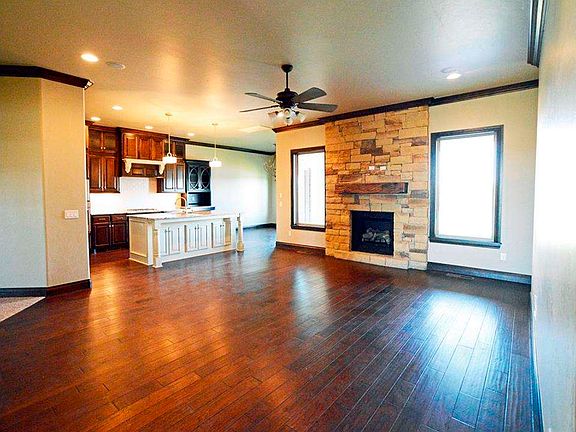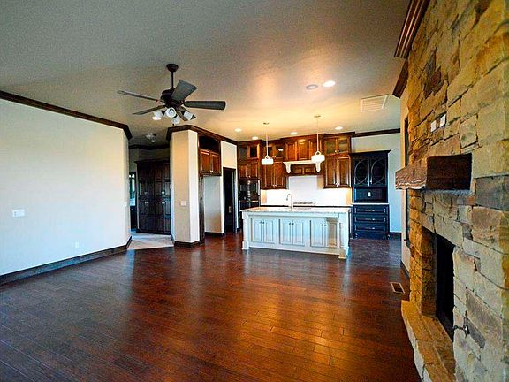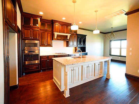 Enjoy the open space and water view by the fireplace in the large backyard or under the spacious covered patio! The charming and elegant Hidden Lakes Addition features it's own 18 acre lake. Quality that exceeds expectation and amenities to include upgraded lighting, flooring, tiles, custom paint & stain, granite & more. Crown molding & wood flooring in main areas, beautiful fixtures & hardware, can lighting in master bedroom, kitchen & living room, central vacuum system, and living areas are pre-wired for entertainment. Spacious kitchen with large island, great for food prep, seating and entertaining. 3 bedrooms downstairs and another bedroom/office upstairs, plus a bonus room, closets and full bath. Beautiful landscaping with LED lighting, insulated garage doors and full sprinkler system. This home sits in a quiet cul-de-sac with little traffic.