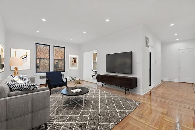 Brand new top floor renovation in the most sought-after pre-war co-op in Bay Ridge, Brooklyn. This huge apartment facing Shore Road Park boasts stunning harbor and bridge views, oversized rooms, abundant light, and every desirable feature, brand new bathroom, dream eat-in kitchen, recessed and dimmable LED lighting throughout, original oak floors with inlaid trimming, 7 windows and 4 large closets. Your kitchen renovation includes marbled quartz countertops, stainless steel appliances, your refrigerator has French doors, and the oven has convection and a built-in air fryer. There’s plenty of room for a good sized table & chairs in the kitchen's eat-in area, or use the space as your office and enjoy a glimpse of the bridge from your window. Your spacious living rooom is 19'8"x13' and bedroom is 19'3"x12'. 9701 Shore Road is an art deco masterpiece with a magnificent lobby and meticulously maintained common areas and gardens. There's a relaxing backyard area and a recently restored fountain in front. The location is convenient, with shopping and restaurants nearby, Shore Road Park athletic fields, tennis courts, playground and future dog run across the street, and local and express buses stop right in front - only 30 minutes to Wall Street - and the R train is at 95th Street Maintenance of $1,019 includes electricity, heat, real estate taxes and building services. This exceptional apartment is a rare find and is being offered for sale for the very first time. As a Sponsor-owned unit, Board approval is not required. However, offers should include the REBNY financial summary, proof of funds, and mortgage pre-approval if financing is involved.