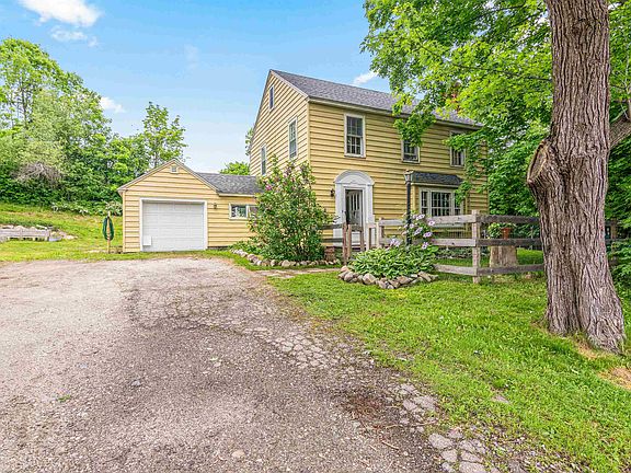 This charming colonial is a homesteader's dream. With 3 bedrooms, 1.5 baths, and an abundance of charm, this home exudes warmth and character at every turn. Step inside the foyer to be greeted by a grand staircase. To the right, the spacious living area beckons with a cozy wood-burning fireplace, perfect for chilly evenings. Adorned with built-in corner hutches, the formal dining area provides an ideal space for gatherings. The adjacent kitchen offers easy access to the dining room, while a half bathroom and mudroom leading to the attached garage complete the main floor. Upstairs, three bedrooms await, along with a full bathroom featuring a separate bathing area. A walk up attic offers plenty of storage potential.The sizabe basement is ideal for laundry and additional storage needs. Outside, on the spacious one acre lot, pear, peach, and apple trees, established concord grape vines, trellised blackberry & raspberry bushes, and over 200 square feet of raised garden beds can be found. A chicken coop adds to the allure of self sufficient, sustainable living. Conveniently located near restaurants, schools, and local attractions, yet offering the tranquility of a rural setting, this home truly offers the best of both worlds. Many recent upgrades including a new septic system in 2022, sump pump, and pressure tank. Open house Sunday, June 2nd, 11a-1p.