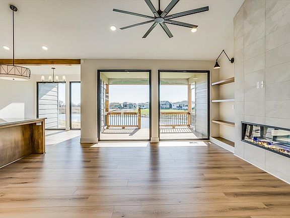 This is the showstopper “Kevin” plan with stairs to lower level located on the side corner of home with full glass walls! You’ll love the floor to ceiling windows in the vaulted living room that look out to the lake. Kitchen is open and has the much coveted window over the kitchen sink looking to front of home. The pantry with double entries runs behind the length of the kitchen, and has 2 pocket doors for double walk thru entry. The laundry room also houses a bench drop zone and connects to the spacious master closet. Stunning soaker tub and glass wall tile shower is a treat in the primary bedroom suite. Bedrooms 2 and 3 (one with vault ceiling) are on the opposite side of the house with a hall bath between. Downstairs you'll find a large family rec room with wet bar, bath, and 2 more bedrooms! Lots of storage too. Large covered deck on back to enjoy those lake views! Taxes estimated and are shown on vacant lot. Information deemed reliable but not guaranteed and may change without notice. Specials are not be entirely spread on this lot so estimates shown. There is a $250mailbox fee collected at closing.