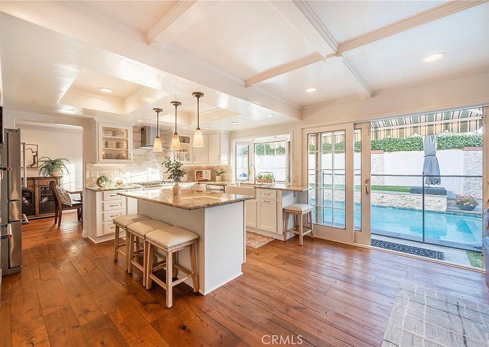 This Stunning Home has it ALL! Located in the desirable South Huntington Beach Coastal Community, South of Banning. This upgraded home sits proudly on an Oversized Cul de Sac lot complete w/ Gated RV Parking, Sparkling New Pool, Hardscape, and Main Floor Bedroom or Office. Just a short walk to enjoy the Beach, Local Parks, Eader Elementary, and Edison High School. This Upgraded Home boasts all New Paint, and Wood Flooring through out. Step inside and be greeted with warmth and quality. The Living Room and adjoining Dining Room stream in lots of light from the Custom Bay Window. The spacious Remodeled Kitchen is light and bright and includes New Cabinets, KitchenAid Stainless Appliances, Double Ovens, Kohler Sink, Large Granite Island, and is open to the Family Room with Accented Ceilings, Stone Fireplace, Mantle, and built in shelving. Large sliding doors lead out to the Pristine Backyard with New Pool, Waterfalls, Gas Fire Pit, a great place to relax, play, and entertain, complete w/ an Outdoor Shower to rinse off after a day at the beach. The Expanded Living Areas, have NO Steps Down into the living spaces or into the Main Floor Bedroom, which makes this one of the more desirable plans in the neighborhood. Upstairs you will find a Large Primary Suite with Remodeled Bathroom and Walk In Closet. The other 2 good sized bedrooms share a Remodeled Full Bathroom complete with New Vanity, Quartz Counter tops, and Designer Tile. This oversized lot offers Ample Parking in the driveway for Multiple Cars, Boat and Other Toys, along with All New Fencing and Gates for the Covered RV Parking, complete with Clean Out. There is a greenhouse style storage shed for all your extras. The Garage also has an Inside Loft Area w/ skylights, that has been converted into an Extra Room, perfect for Home Office, Movie Room, Work Studio, or additional space for the growing family to use. The home is complete with A/C and Dual Paned Pella Windows w/ custom louvres inside the glass. The well manicured front and backyards have Artificial Turf for low maintenance. Save money every month with the leased Solar Panels and battery back-up system, fully equipped to EV Charging station. This beautiful, well maintained property is just a short walk to Top Rated Schools, Iconic Surf Spots, Shopping, Dining, and the neighboring city of Newport Beach, just over the bridge on Pacific Coast Hwy. This is the Very Best of South Huntington Beach. Come Live the Surf City Life and ALL it has to offer!