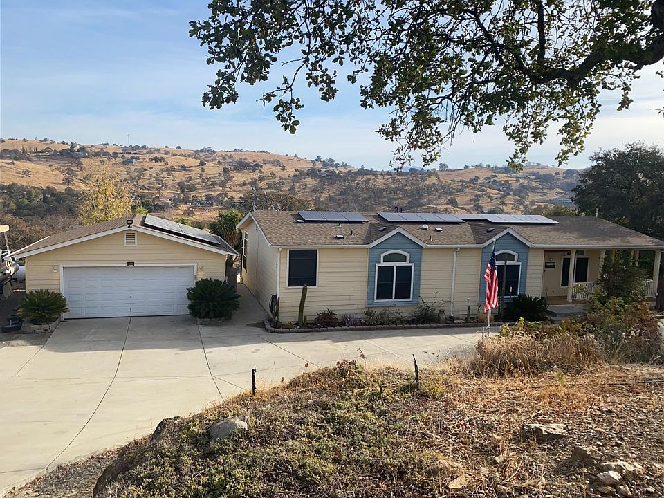 Escape to tranquility in this beautifully situated 2-bedroom, 2-bathroom home, nestled on a serene 2 acre hillside near Don Pedro Lake. With panoramic views of nature in every direction, this home offers the perfect blend of comfort and outdoor living. Inside, you'll find an inviting open-concept layout, highlighted by a spacious kitchen complete with an island with a sink, perfect for meal prep and entertaining. The adjoining flex room offers endless possibilities such as a cozy office, a home gym, or a reading nook. Flex space can be converted into 3rd bedroom. Step outside and enjoy your own private sanctuary on the expansive wrap-around deck, ideal for sipping morning coffee or watching the sunset over the rolling hills. The property is adorned with fruit-bearing trees, adding a touch of nature's bounty right at your doorstep. Whether you're seeking a peaceful weekend getaway or a full-time retreat, this hillside home offers the perfect balance of modern comfort and natural beauty. Relax, unwind, and embrace the serene surrounding. Brand new HVAC system and leased solar!