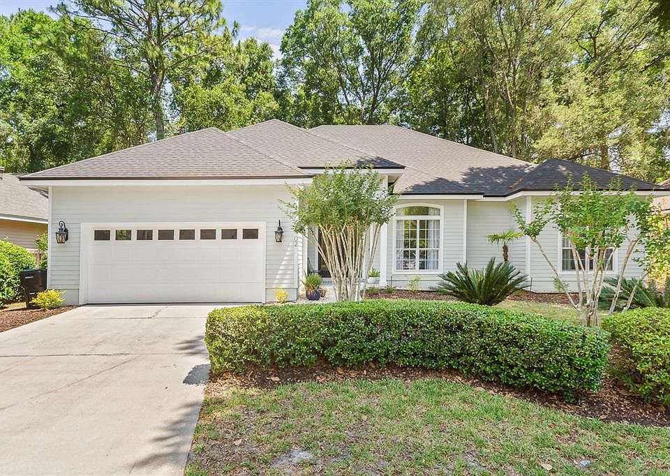 Beautiful 4 bedroom, 2 bath pool home in Haile Plantation, Hampstead Park! Welcome to your dream home in the sought-after Hampstead Park of Haile Plantation. This stunning property offers a perfect blend of modern elegance and family-friendly amenities. Enjoy the convenience of being within viewing distance of the newly renovated Hampstead Park and Playground. Walking distance to Chiles Elementary. Close to Haile Market Square and Hawkstone Country Club and Golf Course. Enter through a huge foyer that leads into a great room with vaulted ceilings and plenty of natural light. Modern wood-look tile throughout the main living room, kitchen and formal dining room. No carpet in the entire house, with luxury vinyl and tile flooring. Spacious kitchen featuring granite countertops, stainless steel appliances, and a huge walk-in pantry. The great room is centered around a modern fireplace with marble-like tile and built in cabinets on each side. The primary bedroom features a large walk-in closet with new custom built-ins, tall windows, and abundant natural light. Each bathroom has granite countertops and updated fixtures. There is plenty of storage throughout the house. Relax on the lanai or take a dip in the pool, overlooking a serene natural common area wood buffer. Roof replaced in 2023, new refrigerator and dishwasher in 2023. This home is perfect for anyone seeking a comfortable and stylish living space with top-notch amenities and a fantastic location. Don't miss the opportunity to make this beautiful property your own! Owner is a licensed Real Estate Agent in Florida.