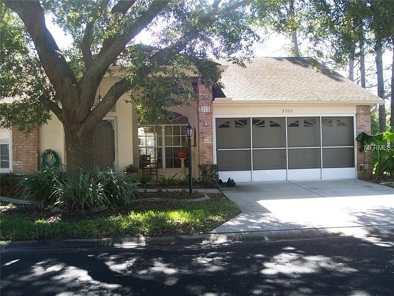 LOVELY LIGHT AND BRIGHT VILLA IN TIMBER GREENS ON THE 12TH FAIRWAY. THIS HOME IS THE POPULAR "MAGNOLIA" FLOOR PLAN WHICH HAS 2 BEDROOMS, 2 BATHS, EAT IN KITCHEN AND A FAMILY ROOM/DEN. THERE IS LOVELY LAMINATE FLOORING IN THE LIVING, DINING AND FAMILY ROOMS. THE MASTER BEDROOM IS LARGE AND BRIGHT WITH A BAY WINDOW THAT OVERLOOKS THE GOLF COURSE. THE GUEST BATH HAS A TUBE LIGHT. THERE IS A BEAUTIFUL EXTENDED SCREENED LANAI WITH NEUTRAL PORCELAIN TILE. THE VIEW IS SPECTACULAR OF A POND, GOLF COURSE AND CONSERVATION. TIMBER GREENS IS A 24 HOUR MANED GATED 55 PLUS GOLF COMMUNITY. IN ADDITION TO THE BEAUTIFUL WELL MAINTAINED GOLF COURSE THERE IS A LARGE HEATED POOL AND SPA. THE CLUBHOUSE HAS SOMETHING FOR EVERYONE INCLUDING A LARGE BANQUET ROOM, CARD ROOM, CRAFT ROOM, FITNESS ROOM, A NEWLY REMODELED AND EXPANDED 19TH HOLE BAR AND GRILL. THERE IS ALSO TENNIS AND BOCCE COURTS. THE COMMUNITY IS CONVENIENTLY LOCATED NEAR STARKEY WILDERNESS PARK WITH BIKING AND WALKING TRAILS, SHOPPING, RESTAURANTS AND MEDICAL FACILITIES INCLUDING THE NEWER TRINITY MEDICAL CENTER AND OUTPATIENT SURGERY CENTER. SELLER IS OFFERING A HOME WARRANTY.