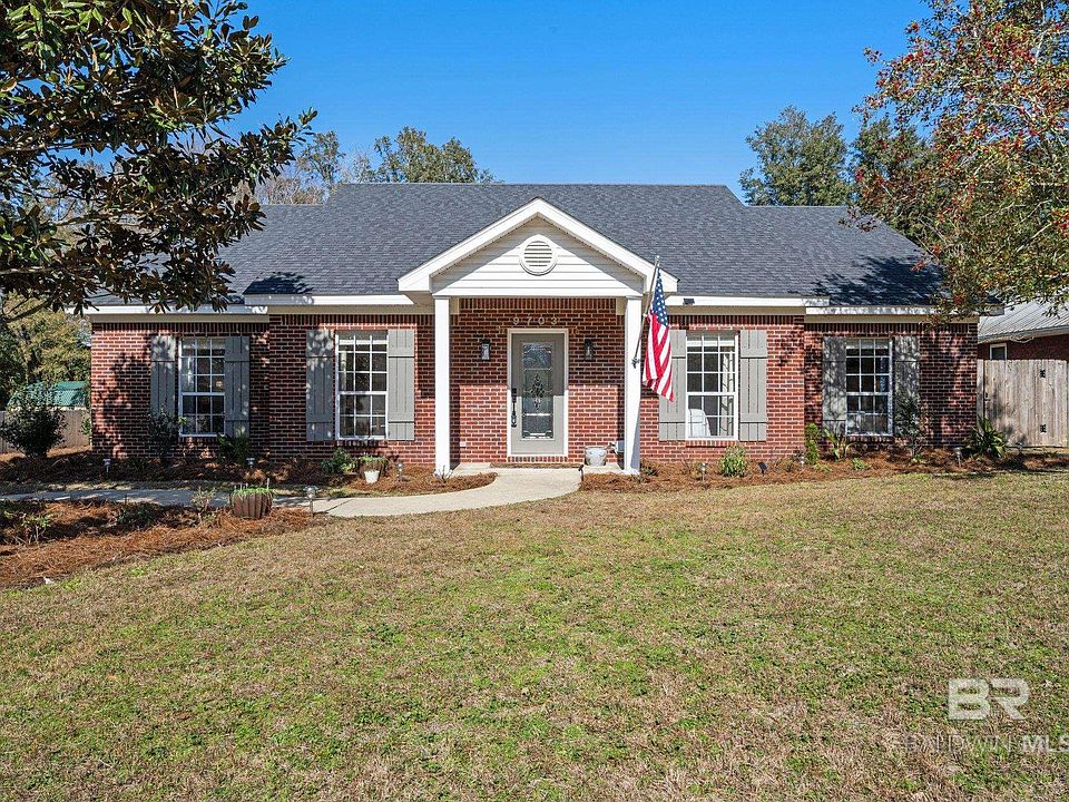 Charming updated Fairhope house sitting on a half acre lot at the end of a single cul-de-sac street in popular Callaway Place. This neighborhood consists of all custom-built homes on large lots and benefits from having no through traffic. It is truly a hidden gem! This one story brick house lives large with 1748 sq ft, 3 bedrooms and 2 bathrooms. The home was remodeled in late 2022 and it has been used only as a secondary home by owner since the remodel. New appliances include range, dishwasher, microwave, and refrigerator. The remodel also included fresh paint and Luxury Vinyl Plank (LVP) flooring throughout. The house has a foyer, spacious living area with gas log fireplace, and separate dining room with lots of natural light. The kitchen has marble counters, stainless appliances, and barstool space as well as breakfast area. Large Primary suite has walk-in closet and separate newly tiled shower. Guest bedrooms share a renovated hall bathroom with a tub/shower combo that has new refinished tub and tiled tub surround and floor. Laundry room has front loading washer and dryer. There are porches on both the front and back of the house. The private backyard is completely enclosed with new fencing including a double gate for RV or boat parking. The double car garage is equipped with a new garage door and opener. The front yard is newly landscaped and includes an irrigation system in front beds. A new roof was installed as part of the 2022 remodel. Window treatments convey. American Home Shield home warranty to convey. Existing termite bond with Wayne's. Septic tank. Furnishings negotiable. No HOA. Fairhope Single Tax property. Fairhope schools. Close to Hospital and shopping. Buyer to verify all information during due diligence period. All information deemed reliable and accurate, but not guaranteed.
