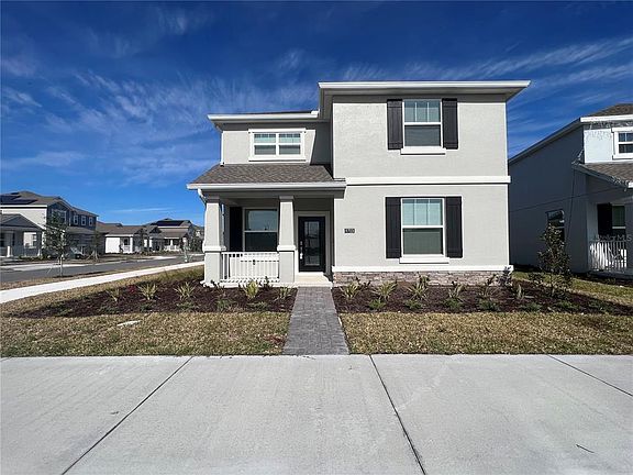 NEW!! MOVE-IN READY Live the Florida lifestyle in this brand-new home located in the desirable Storey Park community within Lake Nona. Home features two-stories 5 beds, 3 baths, 2 car garage with opener, solar energy-saving, formal living room, large office, modern kitchen with a huge island, and quartz countertops, brand-new stainless-steel appliances including new washer and dryer, 42" cabinets. The master suite is located upstairs with walk-in closet and full bath, a separate shower, and dual sinks. There are 3 bedrooms, full bathroom and a loft also located upstairs. There is 1 bedroom or office space located downstairs with its own full bathroom too! Large 2 car garage with plenty of storage space. This home also features a covered and screened lanai. The community offers a state-of-the-art fitness center which include a swimming pool, splash park, tennis courts, recreation area, fitness center, clubhouse, volleyball court, parks, pond with beach, and bike trail. Very convenient to freeway 417 and 528, Narcoossee Rd., top-notch Lake Nona schools, shopping, restaurants, MCO Orlando International Airport, Lake Nona Medical Center, The University of Florida Medical Center, VA hospital, Nemours Hospital, USTA, KPMG Lakehouse, Amazon Fulfillment Center, Cocoa Beach and major attractions. Property has high-speed internet, basic cable, washer dryer, refrigerator and community amenities.