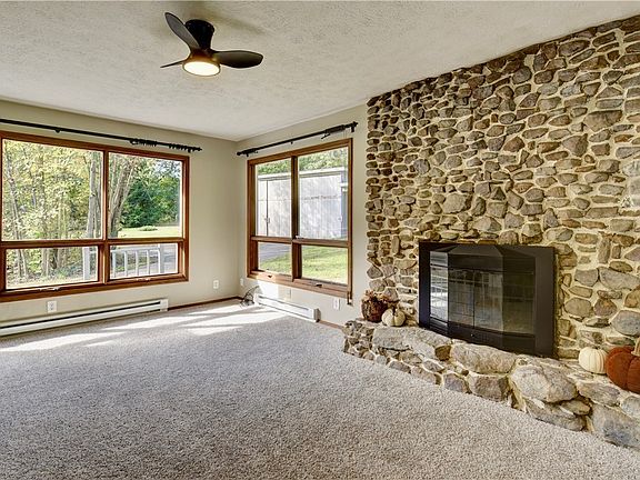 You will just love this Beautiful Home surrounded by Nature!! Pond, Orchard, Barn, Pasture, privately tucked away in the Woods. This 3 Car, 3 bedroom, 2 bath home has just received MANY UPDATES!!. House and attached 3-car garage has just been put under a New Roof. Garage freshly laid Concrete and New Electric remote/wifi Doors. Family Room in Basement has a floor to Ceiling, wall to wall Fireplace with a Pellet Stove. This Family room has been Newly Finished complete with new footers and Sump Pump. New Carpet throughout Living Room, Dining, Family and Bedrooms. New LVT in Kitchen, Entry and Laundry along with Bonus Room. Kitchen just received New Stainless Appliances. Back Yard and Deck overlooking Pond has many possibilities; Pool, extended Deck, Garden and more... Barn does need some updates.