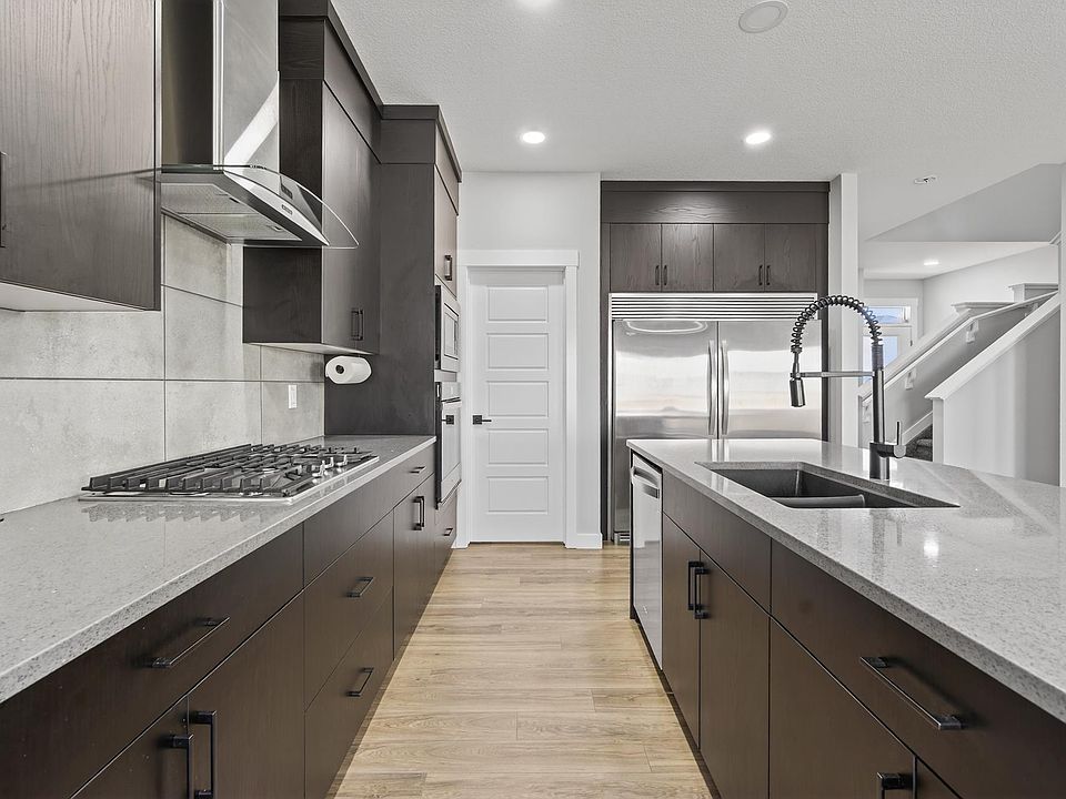Impressive finishingsQuartz countersGas rangeCeiling-height cabinetryCommercial-sized fridgeTop-tier stainless appliancesWalk-through pantry