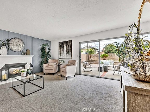 First Time Ever on Market, this Charming Single-Story 4 Bedroom, 2.5 Bath Home with 1,528 Square Feet is Nestled on a Quiet Interior Cul-de-Sac Street within a Premier Fountain Valley Neighborhood with Award-Winning Schools and Less than 4 Miles to the Beach. This Light and Bright Gem with an Open Floorplan Boasts Many Recent Upgrades, Providing a Clean Turnkey Home for Immediate Move-In, Including: New Interior Paint, New Designer Carpet, New Overhead Light Fixtures, Re-Surfaced Countertops, and a New Electric Fireplace in the Living Room. Located on a Large 7,200 Square Foot Lot, Lovely Curb Appeal Greets You with Lawn, Large Shade Tree, Raised Brick Planters, Sweeping Driveway to the 2 Car Garage, and a Welcoming Covered Brick Front Porch. Open the Front Door to Tiled Flooring in the Foyer, Extra Large Dining Room, and Kitchen. The Sunlit Kitchen has Newly Painted Cabinetry, a Breakfast Bar, Double Ovens, Gas Cooktop, Vent/Hood, Dishwasher, and Stainless Steel Deep Sinks. There is a Convenient Half Bathroom off the Kitchen and for Use when Coming in from the Direct-Access Garage. There is also an Inside Laundry Room off the Kitchen. The Spacious Living Room Features a Shiplap Accent Wall and White Brick Fireplace with Mantel, giving it an Updated Contemporary Flair, Plus a Sliding Glass Door that Opens to a Very Private Tranquil Backyard Oasis with Block Wall Fencing, a Huge Brick-Accented Open Patio, and Enough Room for a Future Entertainer's Paradise with Pool, or a Future ADU (with City Approval) and More! 2 of the Bedrooms share a Jack & Jill Bathroom with a Sit-Down Vanity and a Tiled Shower. The Hall Bathroom has been Upgraded with Tub/Shower Combo Featuring Designer Tile with Inlay Surround and Grab Bars. This Fabulous Home is Close to Lots of Shopping Centers and Restaurants, Offering the Ideal Blend of Comfort and Convenience.
