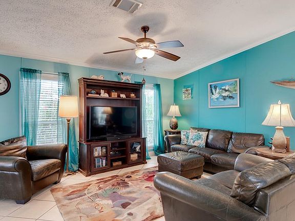 2 bed 2 bath 1152 sq. ft. Home with a 244 sq. ft. Screen room with acrylic sliding windows (room A/C). A 24 wide carport. Accordian style hurricane shutters. Beautiful tiled floors and vinyl planking throughout. New metal roof in 2020. A 10 x 12 utility shed with built-in shelfing and workbench. You own the land, so very low hoa fee.