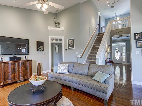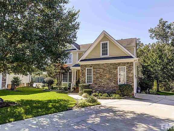 Truly unique waterfront property in convenient Wake Forest location. Beautiful transitional home loaded w/ upgrades. Hwds thruout most of 1st flr. Spacious family rm has cathedral ceiling. Kitchen offers s/s apps & center island. 1st floor master w/ vaulted ceiling, granite top dual vanity, soaking tub w/ sep shower & WIC. 3 bedrms up + loft/bonus room. Tiled sunroom (unpermitted). New HVAC 12/19. New carpet. Expansive deck w/ breathtaking pond views. Extensive landscaping on .61 acre lot. Pool community.