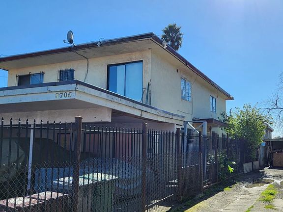 Rare opportunity to own a 4 unit income property located in the Elmhurst Park Neighborhood of Oakland. Currently 2 vacant units. Great opportunity to live in one while renting out the other 3. This property features four 2bd 1ba units, laundry room onsite, covered parking and secured access. Unit D has deck off kitchen with stair access to backyard space. Needs a little TLC. Don't miss this great opportunity.