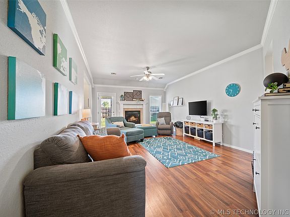 Welcome to 9705 E 109th Street North, an exquisite home nestled in the heart of Owasso. This meticulously maintained residence offers a perfect blend of comfort, style, and functionality, ideal for modern living. This adorable 3-bedroom home includes an office area or formal dining room, providing versatile space to suit your lifestyle. The living room features a beautiful fireplace with gas logs and an open concept layout to the dining area, perfect for cozy evenings or entertaining guests. The spacious primary bedroom boasts separate closets and a luxurious bath with a separate shower and whirlpool bath, offering a tranquil retreat after a long day. This home has been thoughtfully updated, with a new roof installed in 2024, a new dishwasher in 2023, and vinyl windows added in 2022. Exterior were painted in 2023, adding to its charm and appeal. Located in the desirable Metro Heights II community with no HOA, this home offers convenient access to everything Owasso has to offer, including schools, shopping, medical facilities, and more. With easy access to the highway, commuting is a breeze. This home is a must-see, but please note that showings and offers will not be accepted until May 5th. Don't miss out on the opportunity to make this your new home!