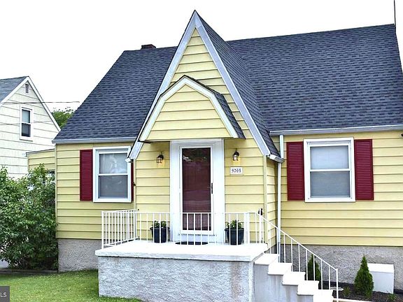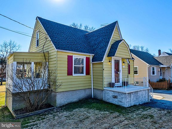 Move-in ready, newly painted Cape Cod with original hardwood floors throughout the main and upper levels, sunroom, spacious family and dining rooms, an updated kitchen that leads to a backyard deck for relaxing and entertaining. The large gated backyard has a fire pit for keeping warm in the cooler months. Master bedroom is on the main level with 2 bedrooms upstairs. The basement has a woodstove to cut your heating bills and is finished with an extra room and plumbed for a future full bathroom. Extra large lot leads to little creek just beyond the rear of the property- very scenic! Short drive to I-695 and close to plenty of shopping. Great starter home!