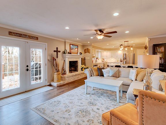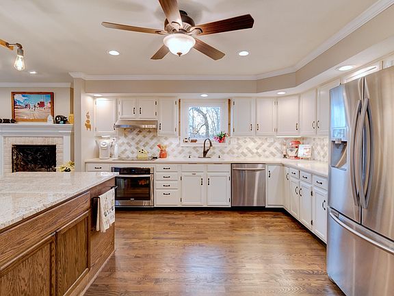 This basement rancher has had a total transformation. Seller opened the wall partitioning the formal living from the den to provide one large large space ideal for entertaining. True hardwood flooring throughout the kitchen, dining room, living and hallway. The old stone fireplace was replaced w/ brick and topped w/ a custom mantle. Custom island for additional storage and counter level seating. Both guests bathrooms have been updated but the master bath was completely remodeled. New vanity w/ his/hers sinks, gorgeous tiled surround in shower, and large walk in closet with barn style door. Lower level houses 4th bedroom, full bath, laundry and large rec room w/kitchenette. Walk out from rec room onto the yard. .91 of an acre lot, w/mature trees and rose garden. Quality throughout