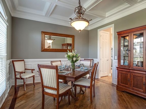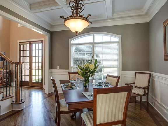 Bright open floor plan with custom features. Coffered ceiling in the formal dining room and master bedroom, extensive crown molding. Fresh paint and refinished hardwoods, nice large lot with mature landscaping. Great kitchen perfect for entertaining - opens to family room and large covered deck. Home office with built in bookcases and French doors. Front and rear staircases and oversize 3-car garage. Almost new HVAC upstairs, new cooktop & ovens. Walking distance to the community pool.
