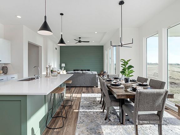 The Rosebud Plan by Robl Building Co. is totally finished with 5 bedrooms, 3 baths, family room and wet bar in basement, all located on a lake lot in Henwick! Serene paint touches in the living and kitchen create a beautiful place to sit and enjoy the water views thru the very large windows on the back of the home. The open layout brings the living room (with uninterrupted traffic flow) and dining together with the kitchen that has a large working center island and oversized walk in pantry tucked behind the kitchen which is just a few steps away from garage entry for extra convenience when carrying in groceries. Primary suite includes a spacious bedroom, double vanities, and tile shower, all connecting to the laundry just off the very large closet. Bedrooms 2 and 3 are located on the opposite side of the house where you’ll find storage/linen closets. Lower level is completely finished where you will find bedrooms 4-5, bath, and large family /rec room with wet bar. There’s also a huge unfinished storage room you will love! Large white Stucco front creates a storybook curb appeal. Includes sprinkler, sod, well, and landscaping. This home is move in ready. All information deemed reliable but not guaranteed and may change without notice. There is a $250 mailbox fee collected at closing. Taxes are shown on vacant lot. Specials and taxes may not be entirely spread yet and are estimated.