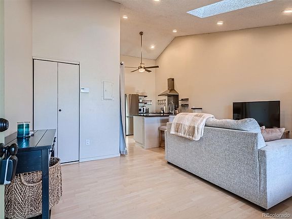 Welcome to the beautiful 1 bedroom, 1 bathroom top-floor condo in Dakota Station Littleton! This recently renovated condo boasts stunning mountain views and features skylights that provide natural light throughout the vaulted ceilings. The minimalist interior design adds a touch of modern elegance, while the stainless steel appliances add both style and functionality to the space. One of the highlights of this condo is the wood burning fireplace, perfect for cozy nights in during the colder months. The oversized closet provides ample storage space, while the spacious back deck offers additional covered storage. Located within walking distance to parks, trails and recreation, this condo offers the perfect combination of outdoor activities and city living. With amenities and dining options nearby, you'll never run out of things to do or places to explore. Additionally, transportation is a breeze with easy access to C470 and Kipling Avenue. Situated in the established neighborhood of Dakota Station in sought-after Jefferson County near the foothills, this condo is the perfect place to call home. Don't miss out on this opportunity, schedule a tour today!