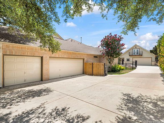 Welcome to your dream home in Fossil Springs Ranch! This stunning single-story property, set on a spacious half-acre lot, boasts an array of luxurious features and thoughtful design elements that make it perfect for comfortable living and elegant entertaining. The home's captivating brick and stone facade sets the tone for the elegance within. Step through the large entryway and be greeted by an open layout that seamlessly connects the dining area, living area and a versatile office space. The home features 3 spacious bedrooms and 2 luxurious baths, all designed with comfort and style in mind. The heart of the home is the chef's dream kitchen, featuring rich wood cabinetry, gleaming granite counters, and an expansive island perfect for meal prep and casual dining. The primary bedroom is a true retreat, offering an en suite bath with a separate tub and shower, as well as two large closets for ample storage. The 3-car attached garage has side entry. A grand circular drive ensures ample parking and ease of access. The additional 2-car detached garage offers not only extra parking but also the potential for an upper-level build-out, complete with plumbing for an additional bath. Enjoy the best of outdoor living with a beautiful in-ground pool and hot tub, surrounded by a covered patio and deck that provide plenty of space for relaxation and gatherings. The backyard is a serene escape with mature trees offering shade and privacy. This exceptional property combines luxury, functionality, and potential, making it a rare find. Conveniently located with quick access to 1604 and I10, shopping and restaurants.