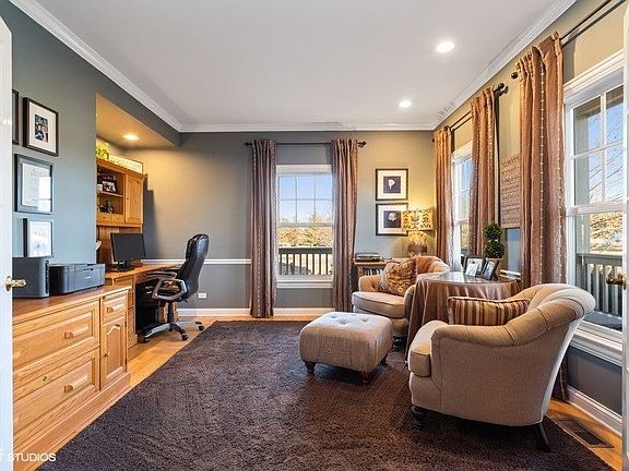 Enjoy sweeping views of Redtail golf course from your wrap around porch, or from your back paver patio! So many features here! The main floor has a HUGE gourmet kitchen, hardwood floors throughout, stone FP in family room, custom mudroom w/cubbies, office & vaulted 3 season room off of family room! Upstairs has large master suite with tray ceiling, stone FP, large bath with dual vanities, walk in shower & separate tub, and large 2-sided walk-in closet. There are 3 more bedrooms, all generous in size with vaulted ceilings. The hall bath & 2nd floor laundry room have been remodeled, and there's a large bonus room. The basement is full, unfinished with 9' ceilings and stubbed for a bath. 3 car side load garage and new driveway. Located in the Village of Lakewood, and close to Randall Rd corridor (shopping, restaurants, etc).