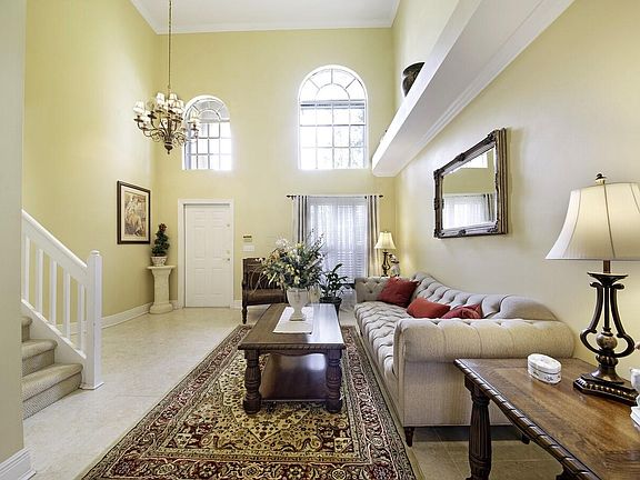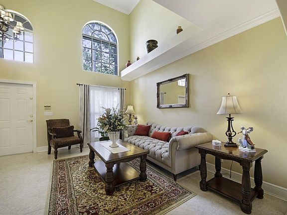 Live the Florida dream in this spotless 3 bedroom, 2.5 bath home. Perfect layout for entertaining with a formal living room with a two story ceiling, arched windows and a formal dining room. Updated custom kitchen with upgraded cabinets with decorative molding, granite countertops, tumbled marble backsplash, and stainless steel appliances. Master retreat with a vaulted ceiling, a walk in closet, dual sinks, soaking tub and a walk in shower. Enjoy your tropical paradise with a custom pool, raised patio, screen enclosure and a serene lake view. This home also features a new A/C (2020), 18'' porcelain tile on the main floor, bamboo flooring, crown molding, smooth walls, plantation shutters, high hat lighting, new pool pump (2021) and accordion shutters. Located close to shopping, dining, ''A'' rated schools and major highways.