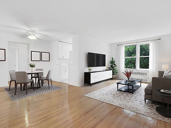 Upon entering the foyer, you are greeted by the open floorplan of the spacious living room and dining area. Newly renovated windowed kitchen displays stylish subway tiles with granite countertop. Windowed bathroom has been completely renovated. There are plenty of closets, windows in every room, refinished hardwood floors throughout this 800 sq ft apartment. Monthly maintenance of $843 includes cooking gas, heat, water and real estate taxes. Sublets allowed after 2 years with Board Approval. Pet friendly. There is a flip tax of 2% paid by the seller. Building requires 80% financing.