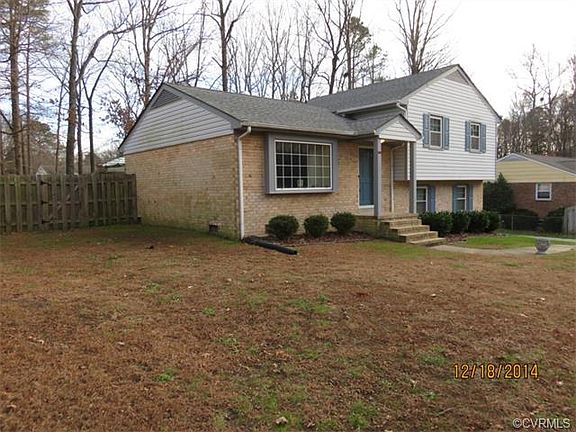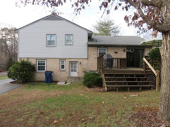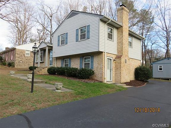 4 bedroom, 2 1/2 bath tri-level on cul-de-sac in quiet Kendale Acres and within minutes to Chester Road, I-288 and I-95 corridors for shopping, restaurants, entertainment and major employment centers - Priced at $91.15/sqft and $9,900 below 2014 tax assessment of $167,400 - Hardwoods abound in hall and all bedrooms - Kitchen with granite countertops, stainless appliances including glass top convection stove, dishwasher, and refrigerator - Dining area opens to rear deck for grillin' and chillin' - Lower level includes family room with wood burning brick fireplace and laminate flooring, laundry/utility room with washer & dryer and 4th bedroom - Upper level has master bedroom with attached full bath/shower and 2 additional bedrooms - Heating and cooling by recently serviced heat pump - Nice large detached shed for storage and projects - Great location, great price, come take a look!
