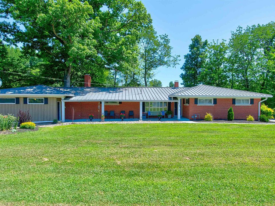 Discover wooded backyard privacy and serene beauty in a prime West Side location! The welcoming mid-century style ranch boasts 4 bedrooms, 3 baths on a stocked 2-acre lake with dock. The 17 x 12 lower-level office has built in cabinets, ample storage, and a private entrance. A wrap around deck, firepit, large bar/game room, and two grand fireplaces make for easy and spacious entertainment with plenty of parking space. The detached 4-bay garage is 30 x 48 with an additional 12 x 24 open front shed. The new heat pump/solar panel energy leaves money in your pocket with an average 2023-24 monthly utility bill of less than $100. Seeing is believing!