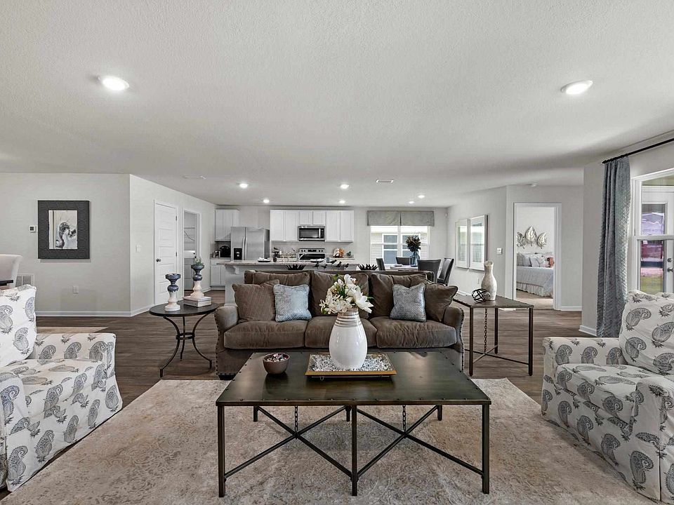 The Sawyer floor plan is a gorgeous and spacious 5 bed, 3 bath home located in Mills Lakes Estates. The kitchen has a great design with granite countertops, an undermount sink, a large island bar, stainless steel appliances, smooth top range, quiet dishwasher and a corner pantry. The kitchen flows into the family room, making it perfect for entertaining and family gatherings. A nice breakfast nook and separate dining area is just off the kitchen too. Lots of natural light and a very relaxing feel throughout the home. Bedroom 1 is spacious with an adjoining bath that offers a double granite vanity, 5' shower, with an extra-large walk-in closet. This home comes standard with a Smart Home Technology package which includes a KwikSet keyless entry, Skybell doorbell, automated front porch lighting, an Echo Dot device and a Quolsys touch panel which can be used to control your lighting, thermostat, front door and so much more. Living at Mills Lakes Estates would mean that you are a short distance to I-10, Navy Federal Credit Union, schools, medical facilities, entertainment and more.