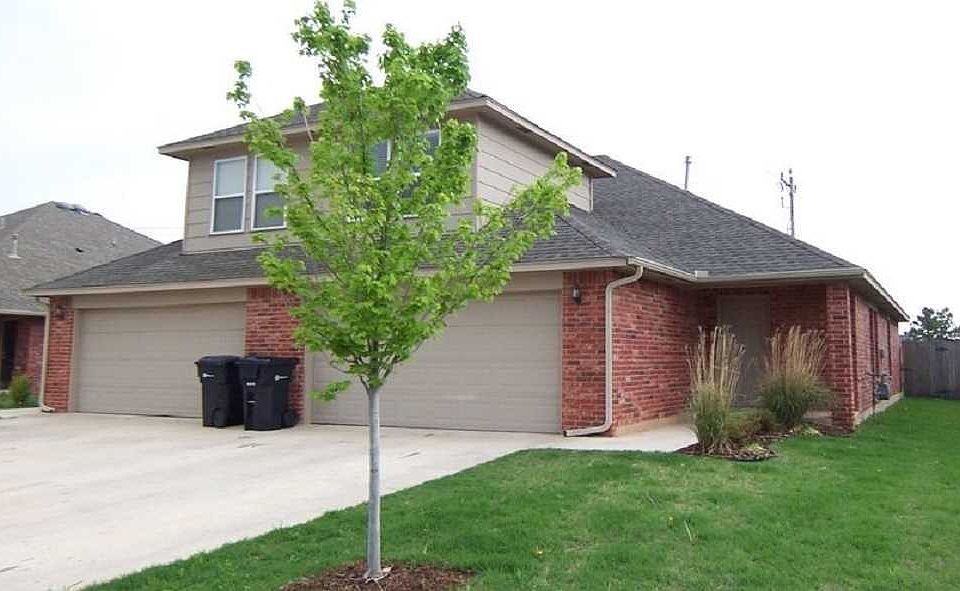 You'll love this 4 bed, 2 bath duplex in a great community in Mustang Schools. The downstairs features an open concept living area, spacious kitchen with lots of storage, dining, master suite with large walk-in closet and full bath along with the two guest bedrooms. Upstairs is the 4th bedroom or could be used as an office. Fenced back yard and easy access to I-40 and the Turnpike. Pets are case by case.