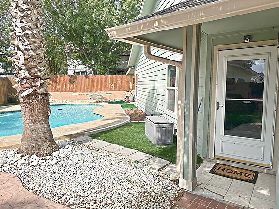 Gorgeous Retreat-Like Rental Home: 4 bedrooms, 2 baths, 2 car garage, in 1971 sq.ft. Living & Dining combo, w/also separate dining rm w/bay window seating. Office just off the kitchen. Split primary bedroom & bath, has a sitting area that opens to the covered patio. Fully updated home. No carpet; ceiling fans throughout. Beautiful inground pool & outdoor space. Artificial turf in backyard. Close to Fort Sam & Randolph Military bases; Park/Playground, & Shopping. Easy access to 1604 and I-35.