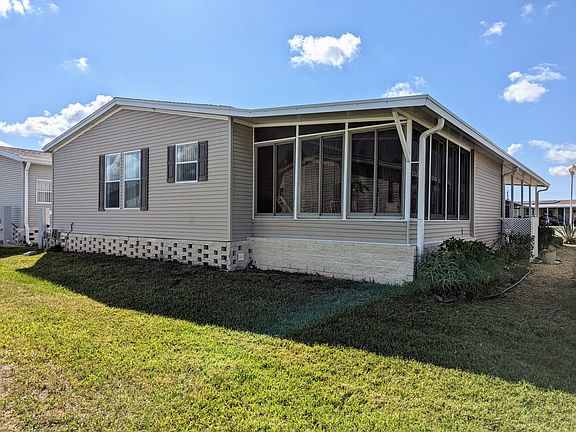 Are you still looking for a manufactured home in sunny Florida? Look no further! Located in a lovely 55+ COMMUNITY that has an AFFORDABLE lot rent of just $530 a month, This 2003 Palm Harbor Biloxi is 1680 SF, has 3 generous bedrooms with a split floor plan, (2 have walk-in closets) 2 baths. The bright & open dining and living area feature a custom fireplace and beautiful tray ceiling! Additional highlights include a retreat room that could be your office or TV room, a separate laundry room with a utility closet as well an eat-in kitchen that has a sliding glass door out to the 14' x12' sunroom with acrylic windows overlooking the backyard with a partial Lakeview too! Better yet, it's all topped with a NEW 2021 SHINGLED ROOF with a 15-year transferable warranty! AC, DUCTWORK & SURGE PROTECTOR was installed in 2017! Just a few pieces of furniture remain with a home in photos, All closets and cabinets Have been cleared out as well as the nice size shed 12'x8'. A great opportunity to own a newer home in a quiet community that is pet friendly. (2 pets up to 25 lbs allowed) Amenities include a heated swimming pool and spa lakeside, tennis and shuffleboard courts, community clubhouse is home to the ballroom, which hosts a variety of activities... dinners, shows entertainment, billiard and craft rooms, fitness room, library, and saunas!Lot rent is $530 a month OR pay 6 months in advance ($3,140 /$520 month) to enjoy the amenities, and includes lawn mowing and trimming. Shopping and dining nearby, easy access to interstates to visit Gulf Coast beaches & Florida attractions. All listing information is deemed reliable but not guaranteed and should be independently verified through personal inspection by appropriate professionals. Integrity Mobile Home Sales cannot guarantee or warrant the accuracy of this information, measurements, or condition of any property. Measurements are approximate. Lot rent is subject to change.