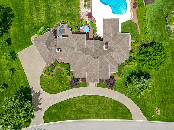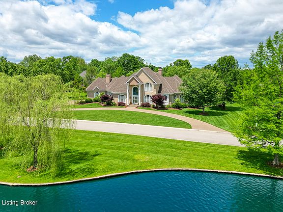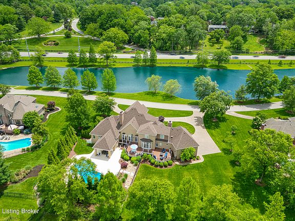 Pride of ownership radiates throughout this fully renovated estate, set on one of just twelve coveted lakefront lots in the prestigious Sutherland neighborhood. Since 2015, every detail of this exceptional home has been thoughtfully updated, blending timeless elegance with modern luxury and effortless indoor-outdoor living. A circular driveway and stately front porch welcome you into a grand foyer with soaring ceilings, immediately setting the tone for the home's refined, expansive layout. Just off the entry, a formal dining room with dentil molding and a private home office—featuring built-ins, and abundant natural light—add both function and charm. The beautifully appointed chef's kitchen serves as a central gathering space, featuring granite countertops, stainless steel appliances, bar seating, and an oversized island with cabinets underneath that include both drawers and interior shelving for maximum storage. It flows into a cozy hearth room with a gas fireplace and a bright breakfast area. Direct access to the expansive Trex deck creates a seamless connection to the outdoors. The main-level great room features 10-foot ceilings, a second gas fireplace, built-in shelving, and transom windows that fill the space with natural light. The luxurious primary suite is a true retreat, boasting double trey ceilings, a sitting area with an electric fireplace, and two oversized walk-in closets. The en-suite bath includes a dual sink granite-topped vanity, a soaking tub, and a spacious walk-in shower. An adjacent full bath is accessible from both the primary suite and the pool areaadding convenience as either a secondary primary bath or dedicated pool bath. Additional highlights on the main level include a well-equipped laundry room with a utility sink, soapstone countertops, cabinetry, plus a walk-in pantry. Upstairs, you'll find three spacious bedrooms, each with walk-in closets. One enjoys a private en-suite, while the other two share a Jack-and-Jill bathroom. A loft with built-in bookshelves offers flexible space for reading, studying, or relaxing. The finished lower level is designed for recreation and comfort, featuring 9-foot ceilings, a family room with a cozy fireplace and theater screen, areas for billiards and poker, a kitchenette, a dedicated exercise room, a full bedroom and bath, plus an additional half bath for guests. Oversized windows bring in abundant natural light throughout. Exit outside to your private backyard oasis. The upper Trex deck offers multiple zones for lounging and dining, while the lower patio features a heated in-ground pool with a waterfall feature, a covered outdoor kitchen, and lush landscaping with lighting. A lockable fenced-in pool area ensures privacy, with open green space beyond for play or relaxation. The oversized three-car garage includes epoxy flooring, built-in cabinetry, and two hidden storage closets. Neighborhood amenities include a clubhouse, swimming pool, tennis and pickleball courts, playground, and dog stations. Perfectly located off U.S. Highway 42, this home offers unmatched access to top-rated schools, shopping, dining, and major roadwayswhile providing serene lakeside living in one of Louisville's most sought-after communities. Schedule your private tour today.