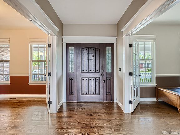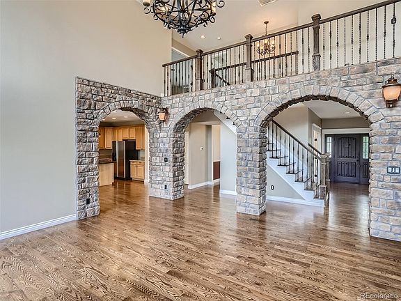 Exquisite, one of a kind Richmond James Model home in Highlands Ranch. You will fall in love with this home as you walk up to the gorgeous front landscaping and covered patio. As you enter the home, you will be wowed by the soaring 20’ ceiling and impressive foyer that set the tone for the home. The custom stone work throughout gives the home warmth. The arched throughways and stunning hardwood floors flow through the home with cohesive design and styling. Main floor study/bedroom, formal dining room, living room and great room with a gas fireplace. The open kitchen features granite countertops and stainless steel appliances. The second floor boasts a deluxe primary suite with vaulted ceilings, completely updated bathroom with a stand alone soaking tub. Upstairs laundry for ultimate convenience. Dramatic catwalk with beautiful wrought iron railing. Large bedrooms upstairs with plenty of closet space. The basement is finished with 2 additional bedrooms, updated bathroom and large entertainment room. Incredible private backyard with covered stamped concrete patio and storage shed. This family home features two hot water heaters! The Furnace and Air conditioner are less then a year old! Enjoy all that Highlands Ranch has to offer with its easy access to trails, recreation centers, shopping and schools!