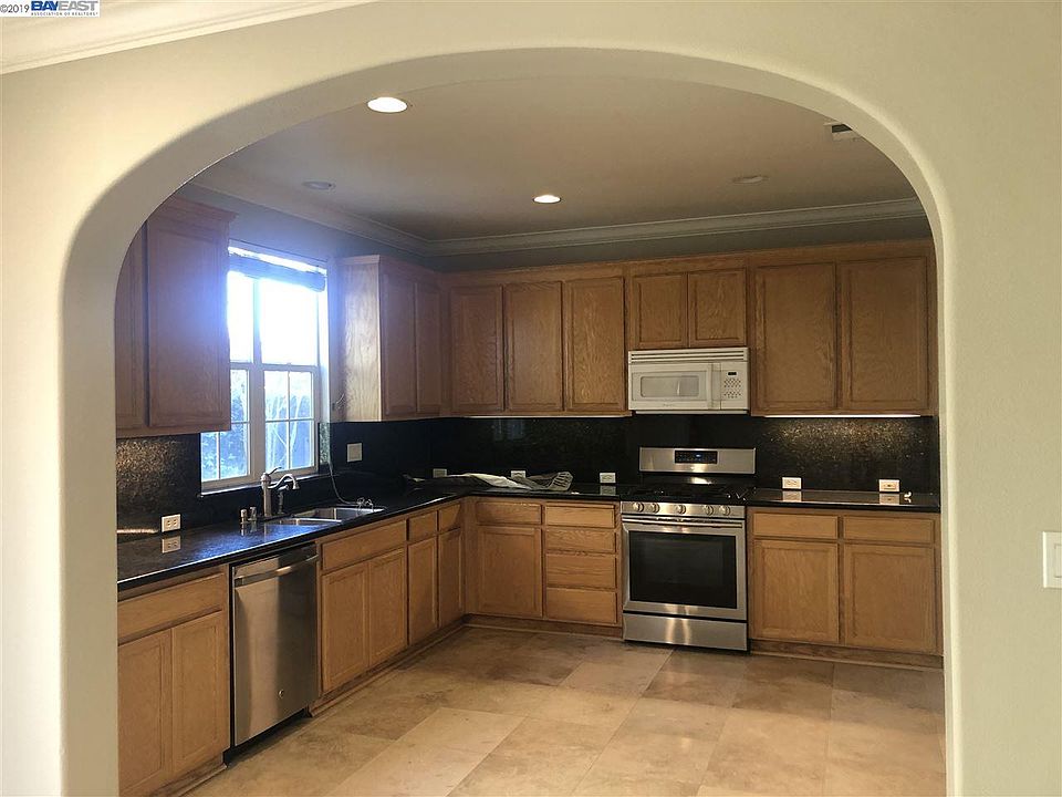 Single family cluster home with a large lot with trellis and full bath and bedroom on the ground level. Granite kitchen and walk in pantry and travertine floors. Larage master bedroom, 2 bedrooms and main bath on the 2nd floor.New paint inside and out, 2 car attached garage with laundry. Community pool and close to award winning schools K thru 12 and shopping.
