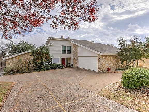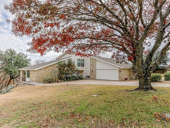 Motivated seller is offering $10,000 in concessions!! Brazos River frontage-over 1.309 acres! Priced to sell- well under the tax appraisal! Scenic views of the river & trees. Wooden floors, sunken living room, vaulted ceiling and floor-to-ceiling stone fireplace. Satillo tiles in kitchen & breakfast area, large pantry, double ovens.Formal dining. Two bedrooms & bath upstairs, extra storage, 2nd AC unit. Living and master are on pier & beam, rest of house on slab.Covered golf cart parking & work area with outlets. Oversized double garage & workbench. Sprinkler sys. uses river water. A covered deck across the full length of house, 2 fire pits on a stone patio.