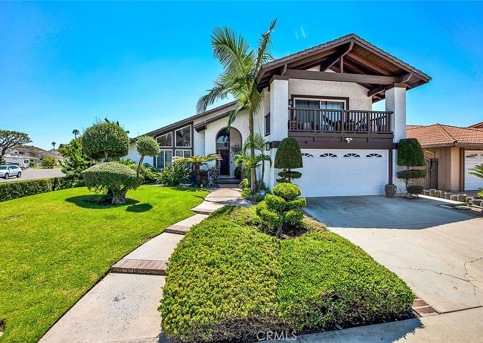 Absolutely Stunning Parkside Estates Home that has been Beautifully Upgraded Using Quality Materials to Create "Zen" Tranquility that Promotes Peace and Relaxation throughout this Home and Private Backyard. It Boasts an Ideal Location on an Interior Corner Lot in this Sought-After Neighborhood with Award-Winning Schools and Near Park. This Light and Bright Open Floorplan with Soaring Ceilings Features a Downstairs Bedroom and Full Bathroom, Central A/C, Paid-For Solar, Porcelain Wood-Grain Tile Flooring, Dual Pane Windows and Sliders, Custom Shoji Screen Window Treatments, LED Recessed Lighting, High Baseboards, Raised Panel Interior Doors, Bamboo Woven Closet Doors, and so Much More! It's Lovely Curb Appeal with Professional Landscaping and Brick-Accented Hardscape Beckons you as you Approach this Special Home. Step through the Double Entry Doors with High Transom Window Above that Casts Wonderful Natural Light into the Foyer and Elegant Formal Living Room. the Adjacent Formal Dining Room has Sliders that Open to the Backyard. The Kitchen has been Completely Remodeled and Includes Granite Countertops, Large Center Island with Two-Sided Bar Seating, Stainless Sinks and Appliances, and Custom Natural Wood Cabinetry with Microwave Niche, Deep Pots & Pans Drawers, and Pantry. The Kitchen is Open to a Lovely Family Room with Built-In Hutch and Wall of Glass Sliders that Open to the Backyard with an Enormous Wood Deck Covered Patio that is Perfect for Outdoor Dining and Entertaining, an Inground Cold Plunge Pool with Water Feature, Bubbling Spa, Japanese White Rock Zen Gardens, and a Lush Side Yard with Fruit Trees. Upstairs you will find the Incredible Primary Suite with Hardwood Flooring, Sliding Glass Doors that Open to a Large Balcony Patio, a Walk-In Closet, and a Remodeled Bathroom with Granite Countertops, Dual Sinks, and an Oversized Walk-In Shower with Subway Tile Surround and Clear Glass Enclosure. There are 2 More Bedrooms Upstairs and a Remodeled Guest Bathroom with Granite Vanity and Tub/Shower Combo with Subway Tile Surround. Impressive Home in a Great Neighborhood Walking Distance to Mile Square Park and Neighborhood Park. Close to Shopping, Restaurants, Schools, and Short Drive to Beach