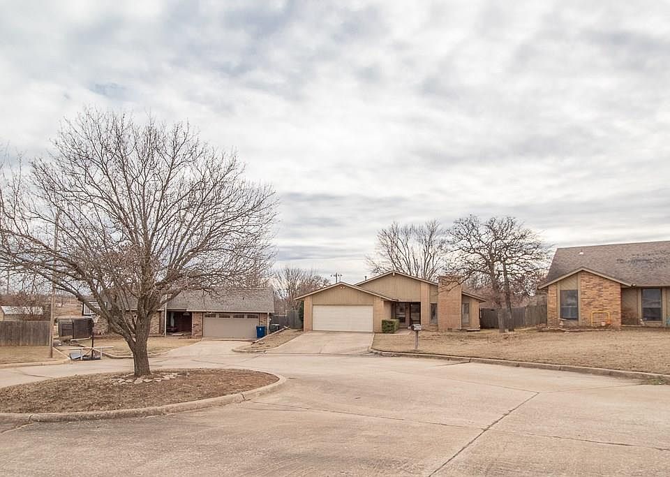 Property located in the desired Carl Albert School District. So much natural light with this one! This unique home offers a wet bar space that would make for a gorgeous coffee bar! Good size bedrooms and closets, and cozy Livingroom fireplace. Sits on a quiet cul-de-sac and offers a large driveway for lots of parking space. Drive on by and see for yourself, and then book your showing today.