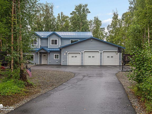 Located on a 1.11 acre private lot w/Wasilla Creek frontage! This custom built 5 bedroom, 4 bathroom home features a 1064 sqft 3 car heated garage, in floor heat, newer appliances, huge rec room upstairs, master bedroom/bath located on the main level separated from other rooms, 9' ceilings, security system, paved driveway, RV parking, vinyl siding, metal roof & backup generator wired to the house.
