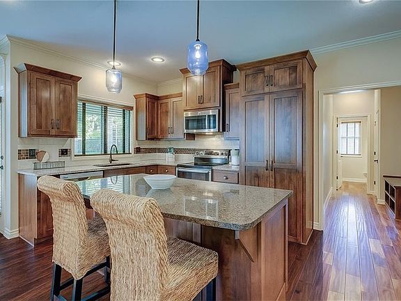 Located in popular Canyon Creek By The Park, this Preston Ridge V floor plan PRICED TO SELL and ready for quick possession. The open layout is ideal for everyday living and entertaining, featuring a spacious mudroom, an oversized walk-in pantry, and a covered deck that overlooks the fenced backyard. The primary suite offers a spa-like retreat with dual shower heads and generous space. Freshly painted inside and out, this one checks all the boxes! You'll also LOVE living in Canyon Creek, a master-planned community in Lenexa, Kansas, where natural beauty meets modern convenience. Nestled amidst over 70 acres of wooded parkland, this neighborhood offers a resort-style pool complex featuring a fountain, shallow reef ledge for children, expansive sun deck, and a Prairie-style cabana with shaded porches. Recreational opportunities abound, from the playground and basketball courts to a spacious open field perfect for soccer or casual games. Scenic walking and biking trails wind through the community, connecting to the forested shoreline of the picturesque 7-acre Mize Park Lake.
