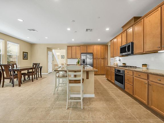 Beautifully maintained 2,610 SqFt home with 4 bedrooms/3 full baths PLUS upstairs Loft area, built by Taylor Morrison. This Home features Two-tone paint, a Downstairs bedroom and full bathroom. Spacious Living Room with lots of windows looking out to the gorgeously Landscaped and Private back yard with Two Covered Patios with fans! The Large Kitchen has lots of counter space and is open to both the Dining and Living rooms, great for entertaining! Energy efficient Stainless steel appliances, polished granite countertops, birch cabinets and beautiful tile flooring with the cleanest grout I've ever seen, plus a butlers pantry area! HUGE Master Suite with room for sitting area, a walk-in closet, and en-suite featuring double sinks and large shower with seat. Bedrooms are nice size! Excellent location, walk to the seasonal evening Farmers Market and District 56 Swimming & Event Center. Close to Dining, Shopping, Movies, Costco, more! This home is immaculate, truly turn-key! “For more information and showing appointment, contact Joan Mitchell @ 916-502-2391. "