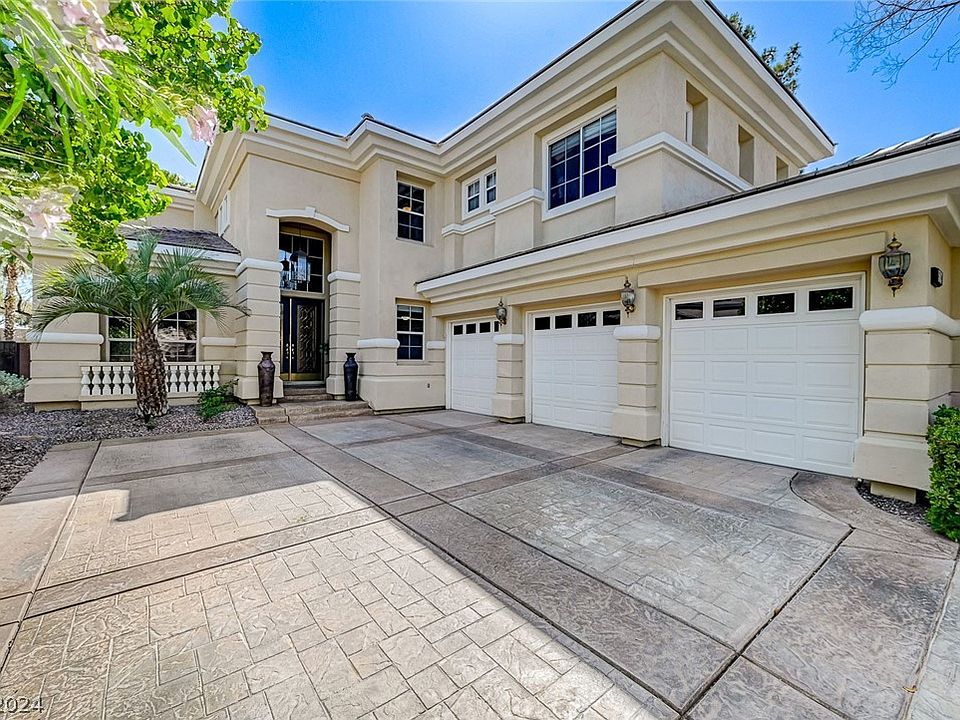 Located in the heart of Summerlin, this exquisite 3,666 sq ft property offers 5 spacious bedrooms, 5 bathrooms, and a three-car garage, all situated on a generous 8,000+ sq ft lot. Enjoy the luxury of a private pool, spa, and 24-hour guard-gated security for peace of mind. Inside, high ceilings and abundant natural light highlight the elegant travertine flooring. The open-concept living area is perfect for gatherings. It features a gourmet kitchen with top-of-the-line Viking appliances, granite countertops, a large center island, and custom cabinetry—the family room, with its cozy fireplace. The master suite is a true retreat, boasting a spa-like bathroom with dual vanities, a soaking tub, a separate walk-in shower, and a spacious walk-in closet. The beautifully landscaped backyard features a covered patio and plenty of space for outdoor activities. Don't miss this exceptional property in a prime location.