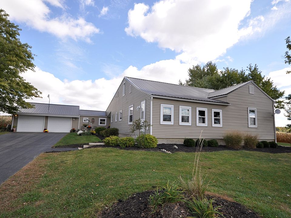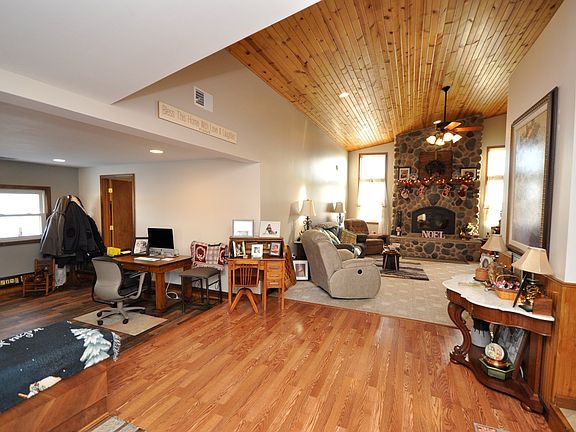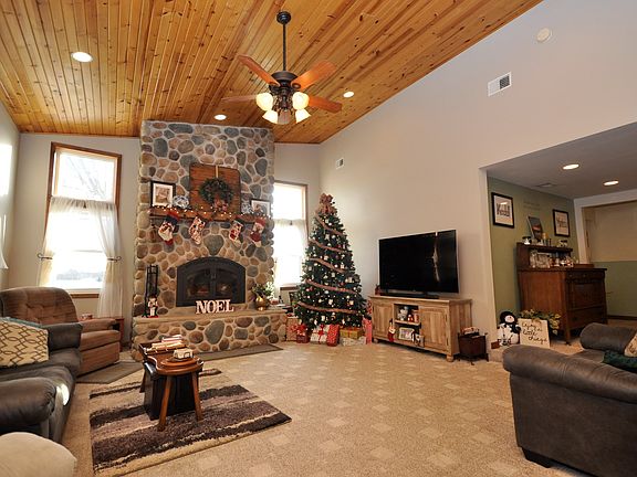 Come home to the country! You'll be immediately impressed by the space in this renovated farmhouse's over 3000 sq.ft. as you walk in the door and are greeted with the vaulted ceiling and two-story stone fireplace of the great room. To the left is the TV room/office area which leads to either two car attached garage or large mudroom and full bath. To the right is a sitting room that opens up to the well-appointed kitchen then to the formal dining room. There are three bedrooms, another full bathroom, and linen closet down the hall and a large loft/fourth bedroom upstairs! Other updates include a geothermal HVAC system, replacement windows, and a generator hookup just in case of bad weather. All of this is situated on 2 acres with a large barn for even extra storage. **Corner cabinets in the dining room are reserved**