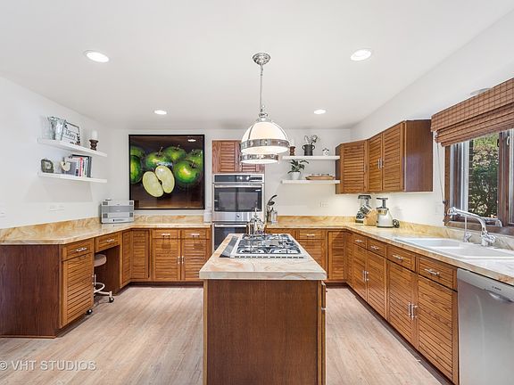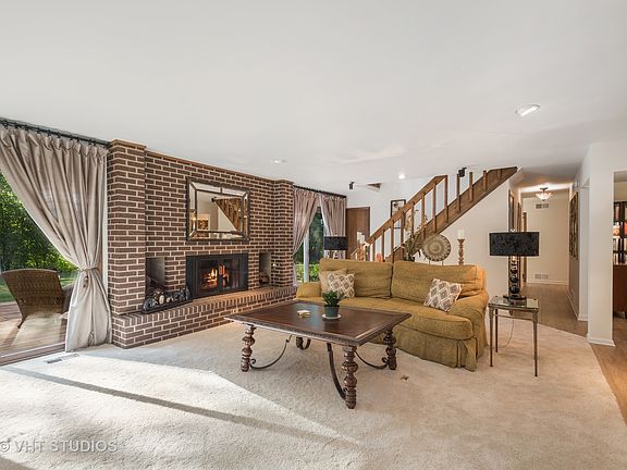 Rare all-brick house, an architectural gem in Stone Harbor Estates; solid as a rock and less than 1 block to pvt. park on the Fox River. Feel one with nature on this 1/2 acre wooded lot. Walk or ride your golf cart down to your own pier, so bring your boat! A WONDERFUL community. This home features a 4-car tandem extra tall garage for all your toys. Deck and patio. Nicely landscaped. This home also features a side drive for additional car, boat, or RV parking. Enjoy an open floor plan in an amazingly bright and airy home. 3 full baths, one on each level, plus a powder room. Large kitchen w/center island, stainless steel appliances, all wood cabinets, double ovens, and a semi-private breakfast room with gorgeous backyard view through sliders and a wet/coffee bar! Snuggle around the gas fireplace in the cozy family room with two additional sliding doors that lead to the newly repurposed deck or gather the family for a movie night in the lower level family room with walk out to a beautiful, lushly landscaped walkway. The home features two beds on the first floor with an updated full bath and a second floor spa-like retreat master suite;complete with vaulted ceilings, ceiling fan, fireplace, floor to ceiling mirrors, two automated skylights, sliding door to take in the beautiful back yard, and walk in closet;master bath with corner Kohler soaker tub, walk in rain shower featuring pebble floors, dual vanities, ceiling fan and large and luxurious far infra-red sauna! Live clean and healthy with dual electronic AND hepa air filtration systems with UV light purifier, and a clean water system along with reverse osmosis filtration system. Clean, well-lit, ABUNDANT custom ELFA storage throughout! Every update done with careful consideration for the owner's benefit. Impeccably maintained and move-in ready. So much love in this home. You won't be disappointed!