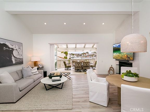 Welcome home to this FULLY FURNISHED masterpiece and enjoy what beachside living is all about! This one-of-a kind, trophy asset is located in the exclusive gated community of Bayside Cove which has been completely & professionally designed and fully upgraded THROUGHOUT to satisfy even the pickiest of buyers with no expense spared using high end finishes. An open and airy floor plan with vaulted ceilings that’s flooded with natural sunlight and a fireplace makes excellent use of the over 2,400 square feet of living space that is all on one level to enjoy. This END UNIT condo which offers extra privacy boasts 2 bedrooms and 2.5 bathrooms with direct, unobstructed views in front of Balboa Bay that can be enjoyed on the large private balcony or through the new accordion balcony slider in the living room or the primary bedroom balcony or from inside the unit preparing a meal in the spacious gourmet chefs kitchen designed for entertaining! ALL of the new custom interior and patio furniture, Viking appliance package, fixtures, artwork, multiple large flat screen TV’s, and luxury bedding are included in the sale! Some of the upgrades include, but not limited to: new flooring, entirely new gourmet kitchen and oversized island with a Viking appliance package (including 48 inch, 6 burner professional range) and imported custom Italian cabinets with floating shelves, waterfall quartz countertops, marble herringbone backsplash, wet bar, oversized walk in showers (with separate soaking tub in primary bath) in both bedrooms, new vanities with custom electric mirrors, premium custom built walk-in closet, custom electric shades, custom designer wall coverings, LED & pendant lighting, chandelier, tankless water heater, and epoxy flooring in the two car garage with an included street legal 4 person executive golf cart to visit Balboa Island, the beach or Fashion Island! On-site amenities include a pool, spa, and a private white, sandy beach. This property is adjacent to the Newport Beach Yacht Club, walking distance to Balboa Island, across from Bayside Shopping Center with restaurants, markets, bank & shops and minutes from John Wayne Airport, Corona Del Mar, Newport Coast, Laguna Beach and the prestigious Balboa Bay Club. Balboa Island has an old town feel & hospitality with great food options and offers a variety of experiences like whale watching and is the perfect spot for waterfront activities.