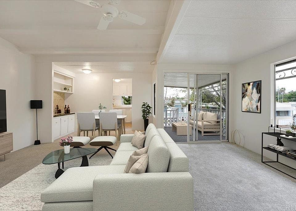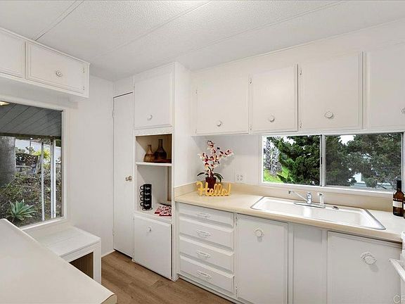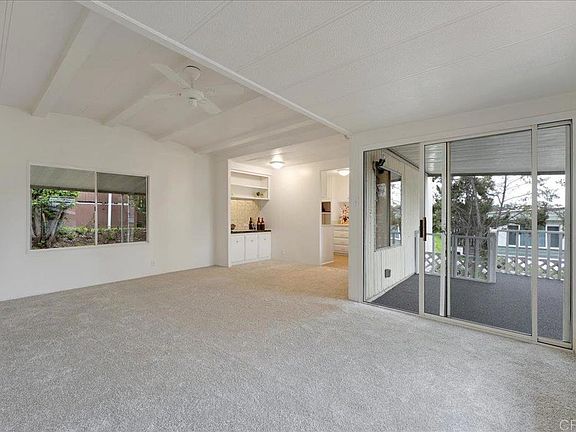 This rarely available single-wide home offers 1 bedroom plus a CA room, a spacious backyard, and a prime location within the park. The home is 648 ESF PLUS 173 ESF for the CA Room & Expanded Living Room (total of 821 ESF ).The home features new interior paint and new flooring throughout, with vinyl plank flooring in the kitchen and bathroom and carpet in the rest of the home. One of the standout features of this home is its two inviting porches—one in the front and one in the back—both newly updated with outdoor carpeting. The front porch provides a charming space to relax and enjoy the neighborhood, while the expansive rear porch offers a more private retreat, perfect for entertaining, outdoor dining, or simply unwinding in the fresh air. Both the primary bedroom and CA room have sliding glass doors leading directly to the backyard porch, seamlessly blending indoor and outdoor living. The large, private backyard has been freshly landscaped with fruit trees and ample space for gardening or outdoor activities. Inside, the open-concept living and dining area includes a wet bar, creating a bright and inviting space with plenty of natural light. The kitchen features two windows, a gas stove, and a pantry, while ceiling fans in the living room and bedroom enhance comfort. A large storage shed as well as washer/dryer hookups are conveniently situated within the carport area. There's also a community laundry room available. Rancho San Marcos is an all-age park with rent control, offering fantastic amenities such as a clubhouse, pool and spa, billiard room, and a large grassy area near the clubhouse. Ample guest parking is available, and the community is located just across the street from Richland Elementary School. *SOME PHOTOS ARE VIRTUALLY STAGED*