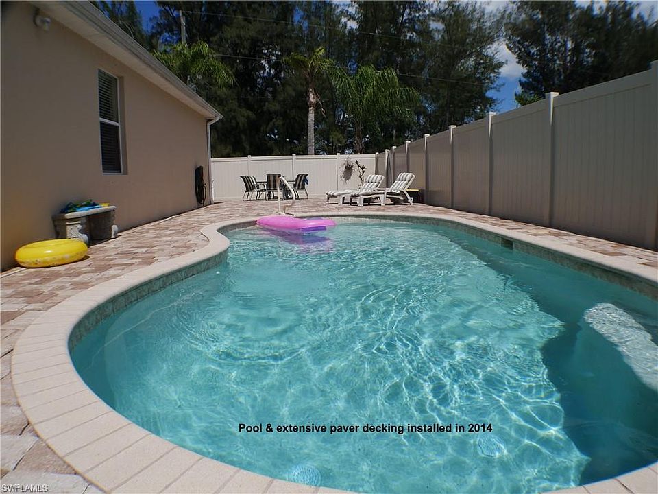 HUGE Price improvement!! Virtual Showings available! Bring your fussiest buyers - This 3 bedroom/2 bath/3 car garage POOL home is situated on an oversized, 1/3 acre corner lot and is immaculately maintained! Boasting just under 2000 square feet, with large living/dining room, separate den-which is used as office and family room overlooking kitchen. Flooded with natural light, all windows have hurricane protection. Kitchen with 42" cabinets, stainless steel appliances, breakfast bar & breakfast nook. Master bedroom suite with large walk in closet, large bathroom with garden soaking tub and separate shower. The oversized, free form pool was installed in 2015 and is surrounded by expansive paver decking and privacy fence. HVAC replaced in Oct. 2019, Water heater April. 2020. The 5 year old Pool, pavers & fence offers an amazing, private outdoor oasis to enjoy with friends and family. Must see to appreciate. The location is convenient to shopping and restaurants on Pine Island Road and has easy access to Ft Myers and Punta Gorda. Originally built in 2004, this former model home which was renovated in 2013, shows like a new home!